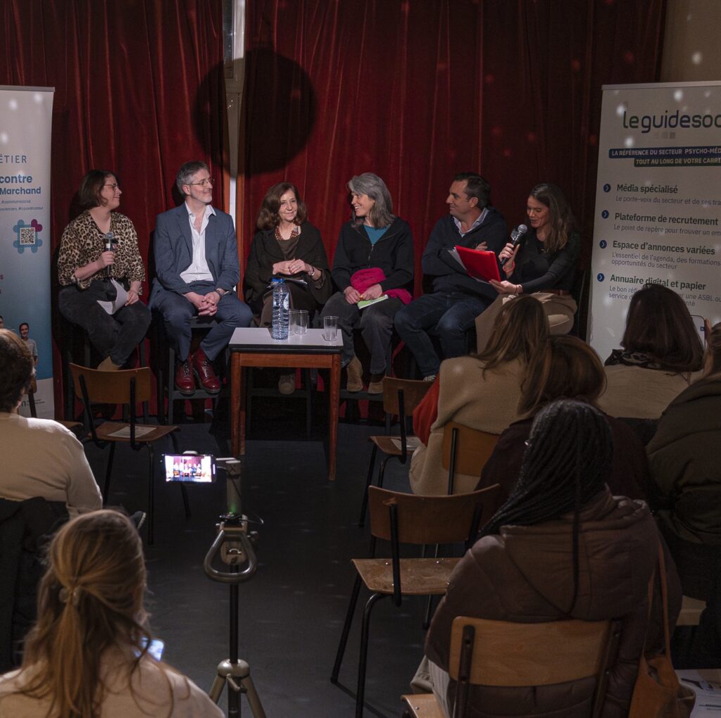 Autour de la table, des acteur·rices issu·es d’horizons différents – Bruno Duchenne (Samusocial Brussels), Céline Nieuwenhuys (Fédération des Services Sociaux – FdSS), Muriel Quinet (Iriscare) et Alban Antoine (CH Jean Titeca) – ont croisé leurs regards, partagé leurs analyses et ouvert des pistes concrètes pour revaloriser les métiers du social et de la santé.